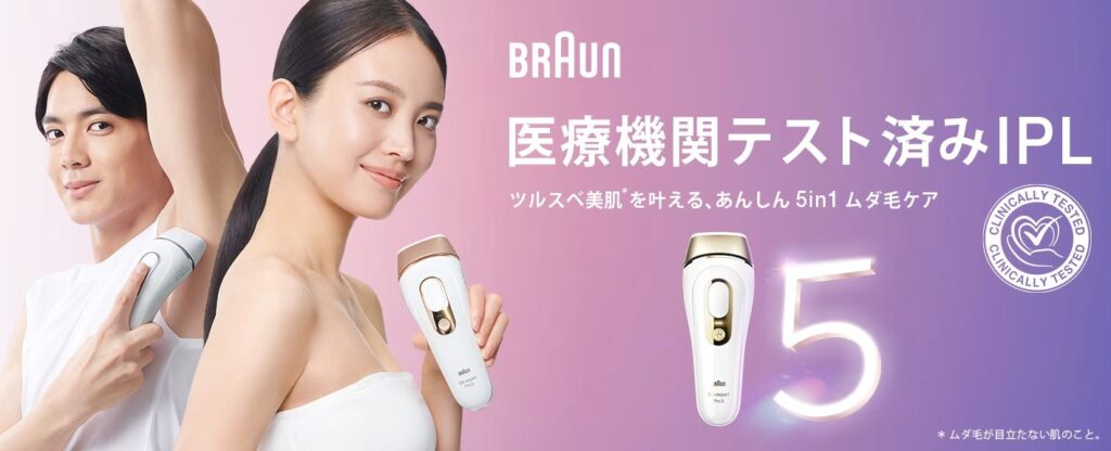 | 5位 | ブラウン シルクエキスパート PRO5 | 肌色自動検知×連続照射で高速ケア | 約38,680円 | ハイスペックで効率的に全身ケア |