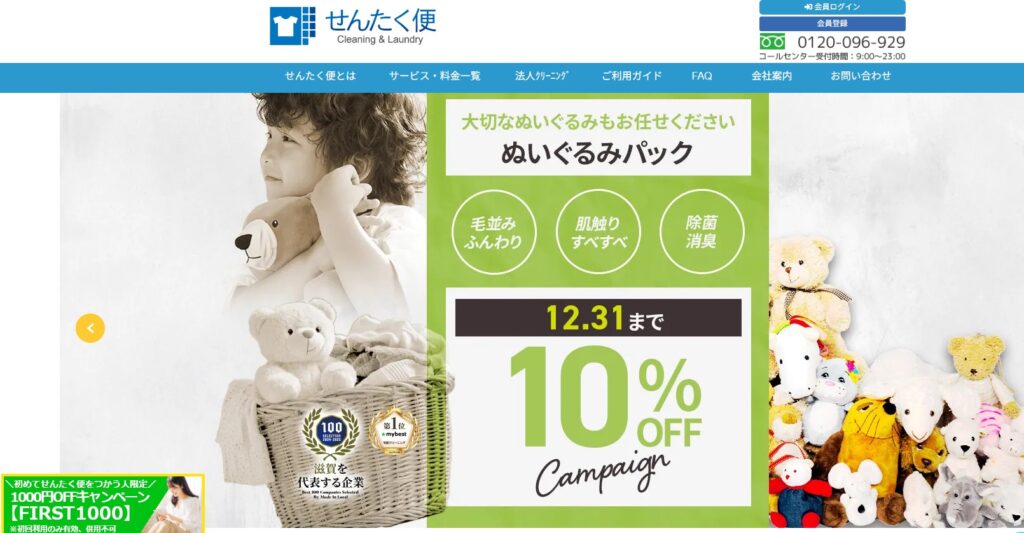「せんたく便」は、定額パック料金制を採用し、わかりやすくお得な価格設定が魅力の宅配クリーニング。